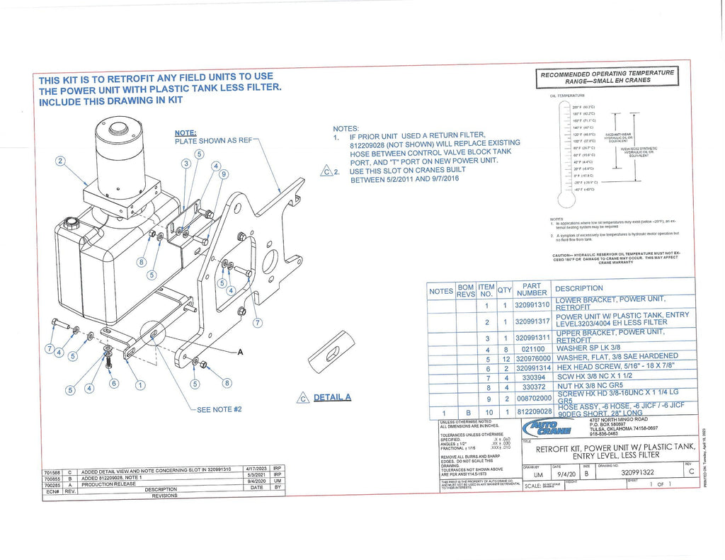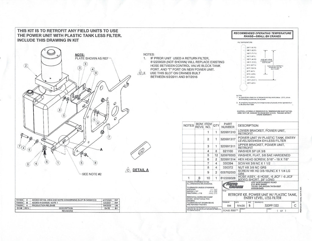Auto Crane 320991322 RETROFIT KIT, POWER UNIT W/ PLASTIC TANK, ENTRY LEVEL, LESS FILTER